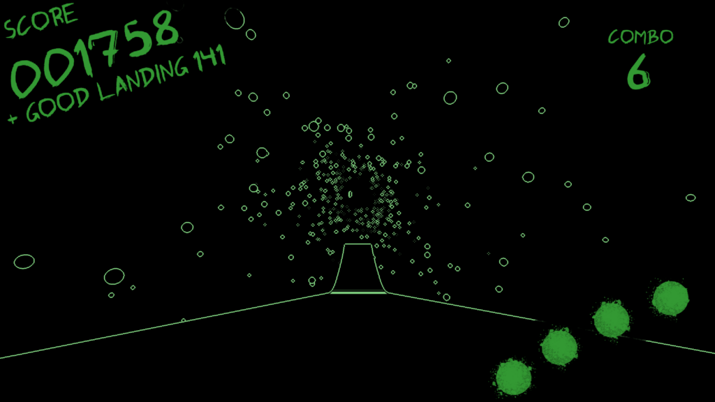 Without varying the direction of gravity, our movement is rather simple. Our forwards component of velocity (in the negative z direction) increases while in contact with a platform (creating a “speed ramp” type mechanic) and decreases while in the air (creating a form of air resistance). Meanwhile, our side velocity in the xy-plane is generally determined by the left and right arrow keys (or A and D, if that’s what you prefer), allowing us to strafe side to side.