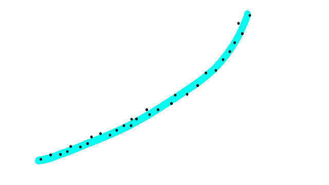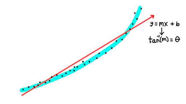 This is certainly a novel area of mathematics to use in real time in a game, but it makes sense in this context. In basic statistics, we can use a linear regression to find a line of best fit for a series of points. That line has a slope, and that slope can be transformed into a direction, which we can then pass into our physics code to change the direction of gravity.