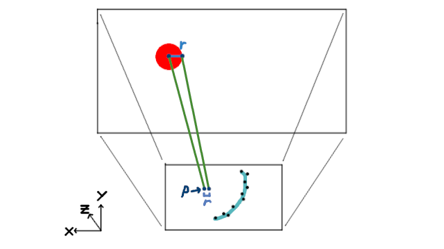 First of all, this is clearly a problem we should solve in 2D rather than 3D, so let’s unproject the enemy geometry. Since the enemies are roughly circular, we can do this by unprojecting two properties: the position and the radius.
